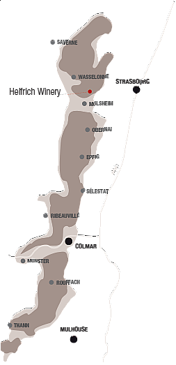 Alsatian wines have centuries of tradition. The Helfrich family has a long history in winemaking. They have been in Alsace for six generations making wine and "Eaux de vie" ( Plum white brandy, Cherry brandy, or Kirsch schnaps). Helfrich is leading the wine renaissance in Alsace, their family is at the forefront of alsation winemaking techniques with classic vineyards and alsatian wine traditions.